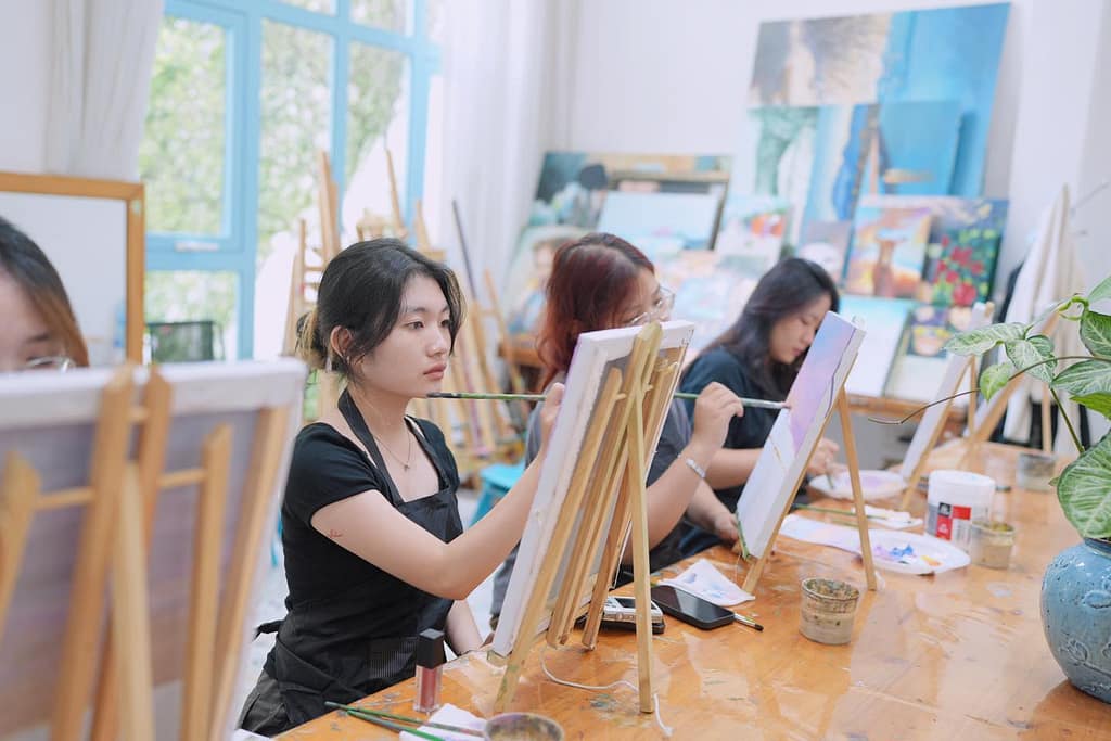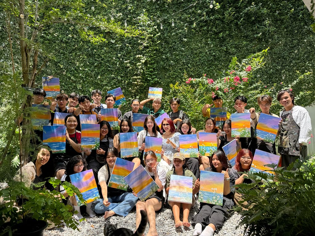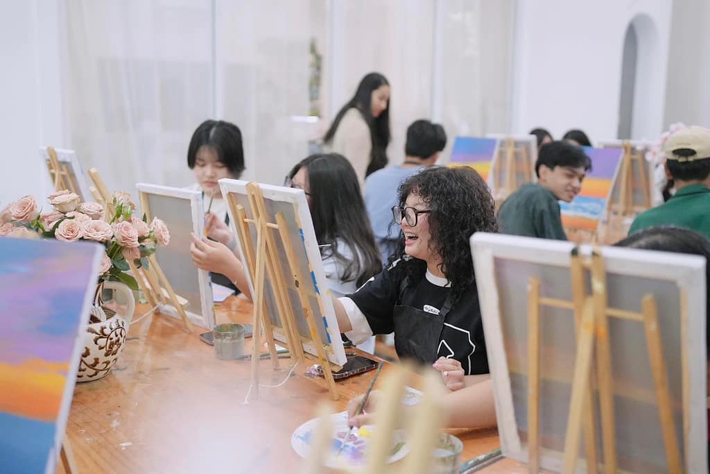 Buổi workshop không chỉ là cơ hội để sinh viên Văn Lang khám phá hội họa, mà còn là dịp để kết nối và sẻ chia. Giữa không gian ấm áp của Lớp vẽ Ngôi Nhà Nhỏ, từng nhóm bạn cùng nhau trò chuyện và hỗ trợ nhau trong từng nét cọ. Những nụ cười, câu chuyện và khoảnh khắc tập trung đã giúp cho sự kết nối của các bạn lại thêm thân tình, để không chỉ là những giờ đồng hồ cùng cọ và màu, mà còn là không khí tươi vui của những người trẻ đầy say mê.